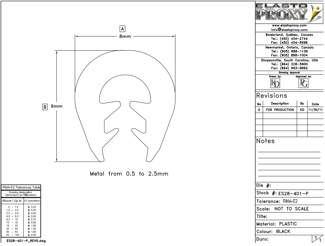 有时,工程师或产品设计师指定的公差对金属零件来说是合适的,但对橡胶型材就不合适了。作为一个经验丰富的定制制造商,Elasto Proxy可以审查您的图纸或CAD文件,并提出修改建议。通过检查公差表橡胶制造商协会(RMA)然后,我们的技术团队可以推荐支持您的产品设计的解决方案。